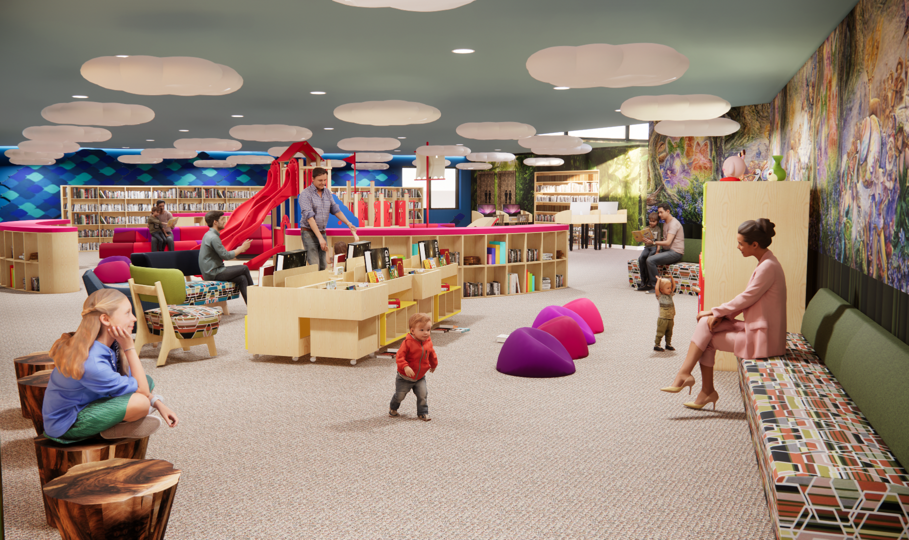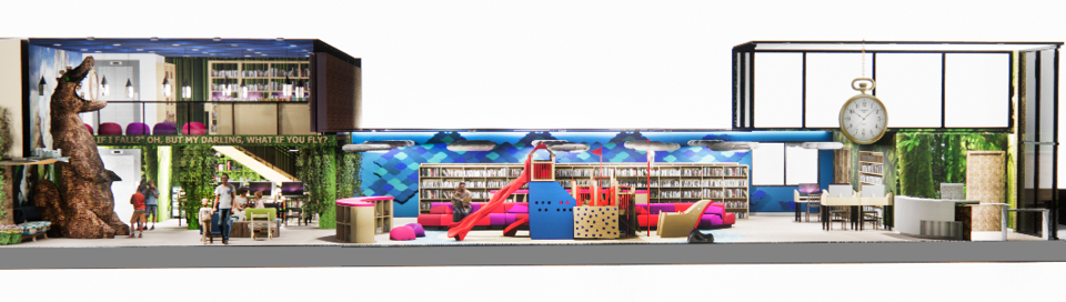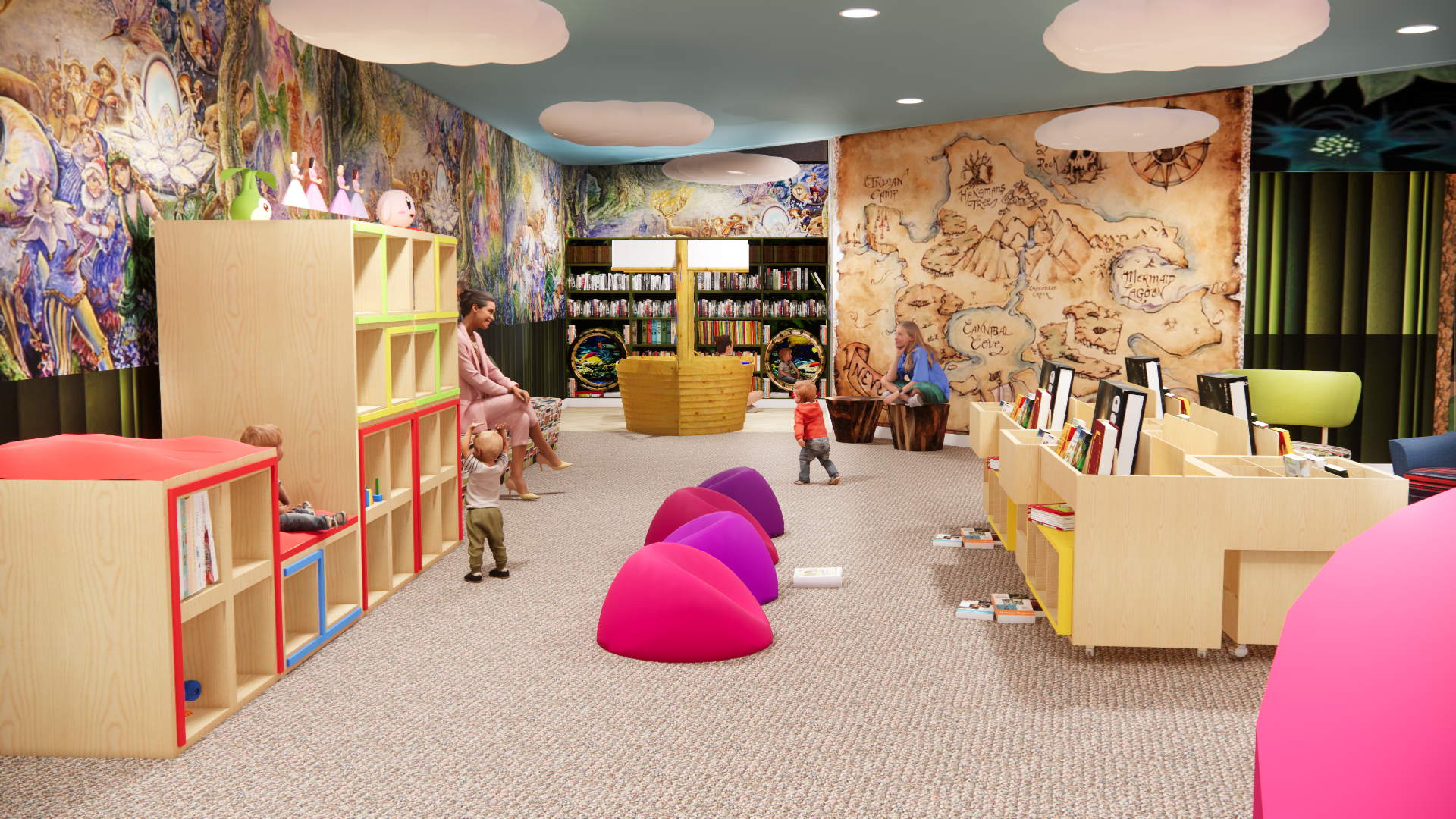 NeverNeverLand Library was created as a dreamland and haven for children to learn, socalize, and just be themselves. Built on the principals of fun, imagination, and never growing up, the redesigned Children’s Room will create an atmosphere of inspiration and whimsy, while fostering a strong interest in education and knowledge.